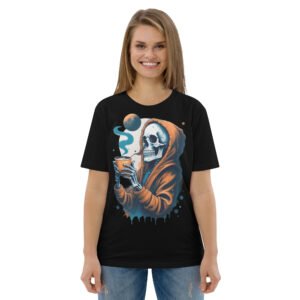Camiseta Café con la Muerte de algodón orgánico unisex