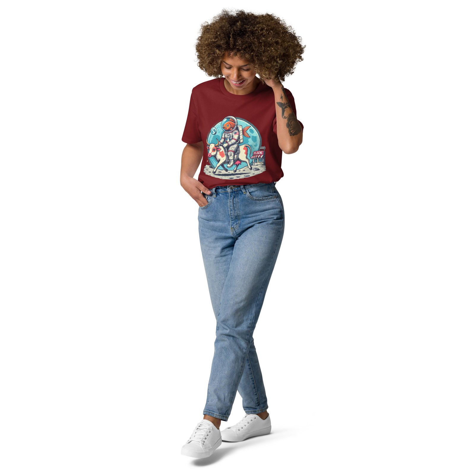 Lleva el estilo retro-futurista a nuevas alturas con nuestra camiseta ‘Astronauta en la Luna con Vaca’. Este diseño peculiar y divertido muestra un astronauta montando una vaca en un paisaje lunar, rodeado de detalles de ciencia ficción y estilo vintage. Perfecta para quienes disfrutan de diseños originales y llenos de humor, esta camiseta es ideal para destacar y llevar una sonrisa a todos los que la vean. ¡Perfecta para amantes del espacio, la creatividad y lo inesperado!